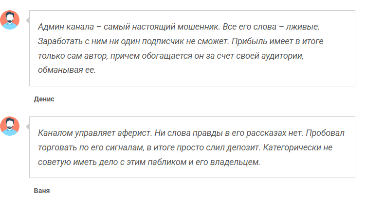 Искусственная накрутка популярности канала говорит о том, что изначально трейдер не настроен на прозрачную работу. Ссылка на инвестиционный портфель аналитика отсутствует. Его доход – это реферальные откаты от рекламируемых проектов.