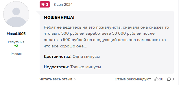 На независимых сайтах и отзовиках можно встретить негативные отзывы об Ульяне. Девушку прямо обвиняют в мошенничестве.