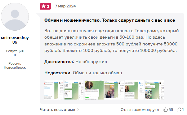 На канале в Telegram есть положительные отзывы с восторгами, но на независимых сайтах только негатив.