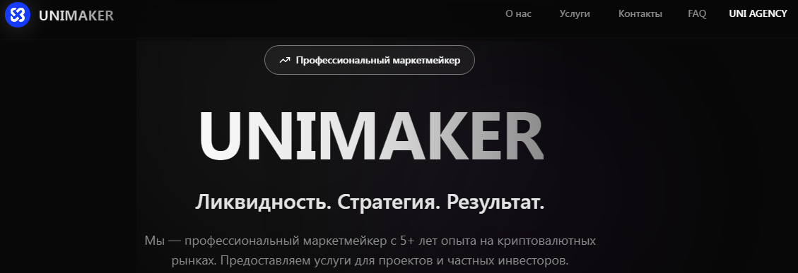 На сайте проекта Unimaker Co опубликовано объявление о возможности сотрудничества с командой профессиональных трейдеров, которые помогут гарантированно выходить на рынке в плюс. Площадка организована опытными криптоинвесторами, которые в течение уже более 5 лет увеличивают объемы прибыли. Мы решили проанализировать торговый сервис и выяснить, нет ли риска потерять инвестиции, пытаясь заработать на бирже, применяя сигналы успешных криптовалютных торговцев.