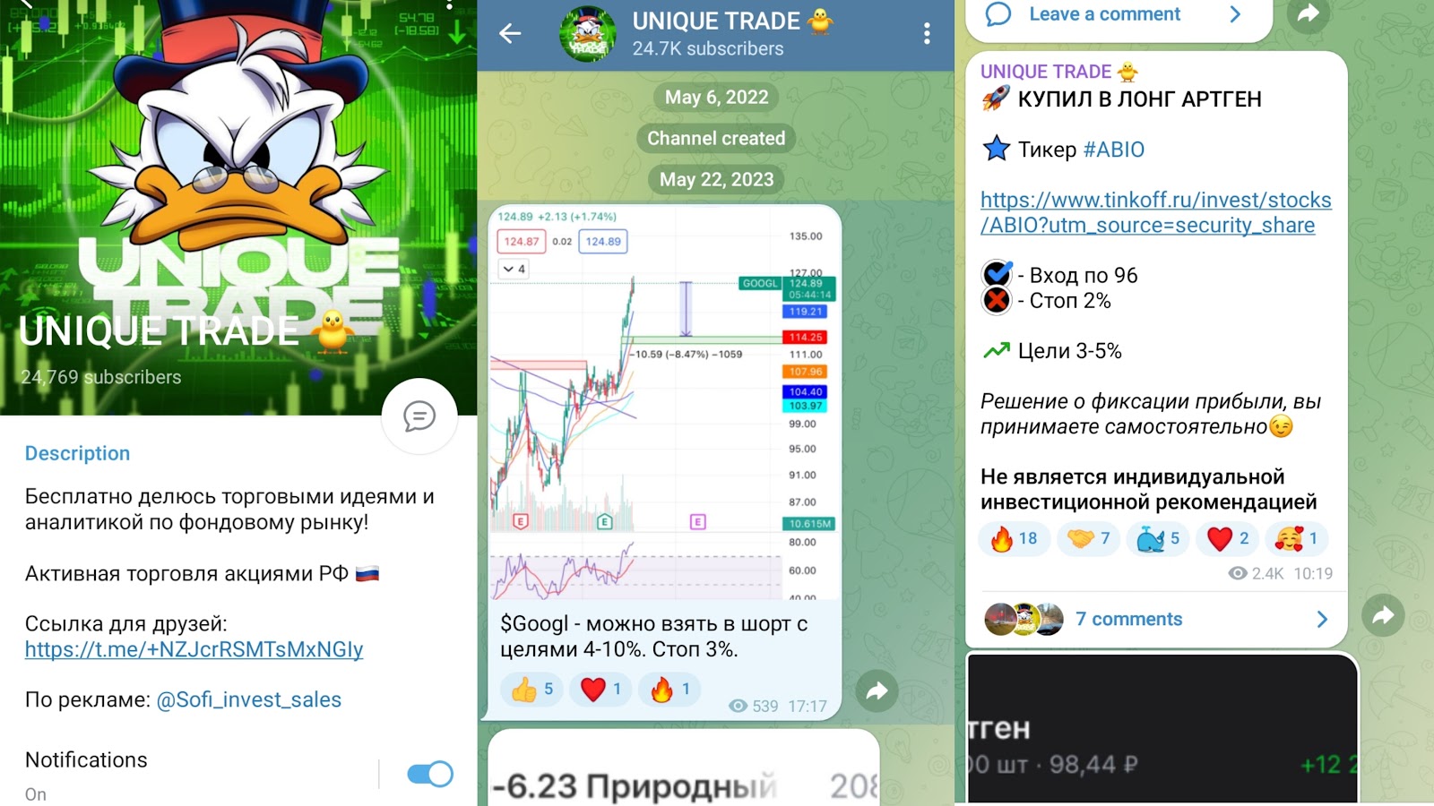 Unique Trade — это проект в Телеграмме, который посвящен аналитике фондового рынка. В блоге трейдер делится бесплатными торговыми сигналами, а также новостями. Как упоминает автор, он готов предоставлять отчеты по своим сделкам и не будет предлагать платных услуг. В новом обзоре мы расскажем о проекте всю правду.