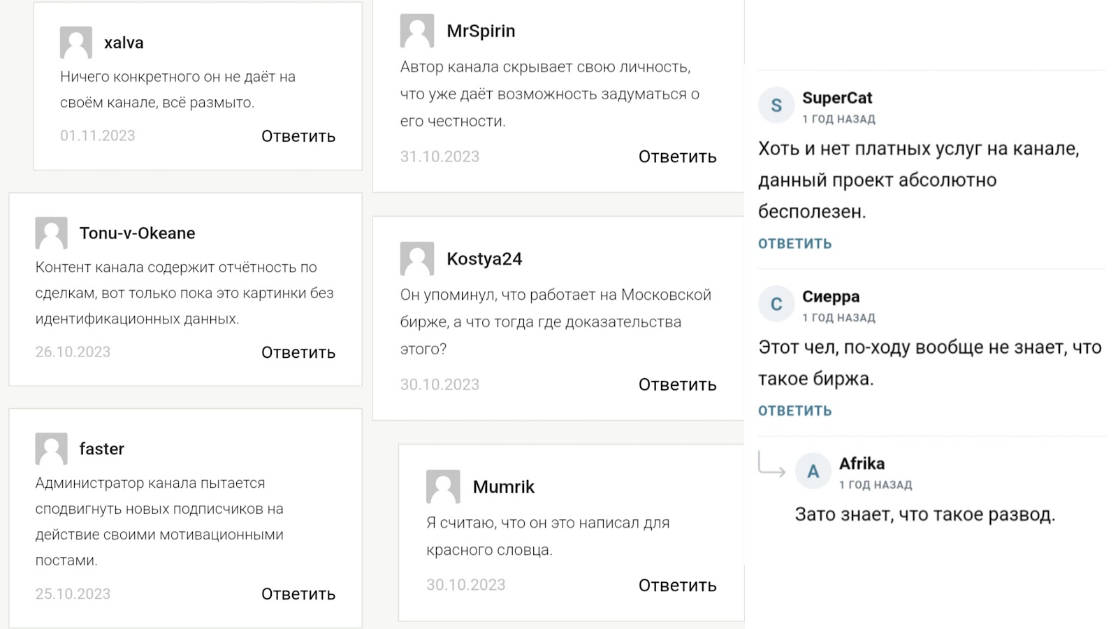 Пользователи сомневаются в честности автора, ведь он не предъявляет доказательств экспертности. Некоторые пишут, что на канале нет полезной информации.