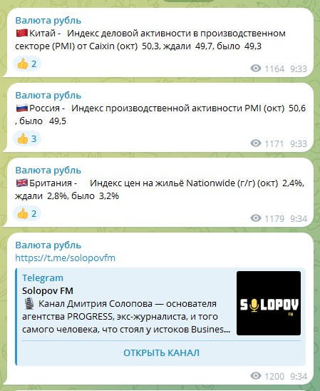 Валюта Рубль — телеграм канал с аналитикой финансового рынка от трейдера Олега Богданова. Проект появился год назад, но его создатель известен был уже давно, как ведущий обозревательного контента на теле и радиовещании в России. Автор проекта предлагает свой взгляд на мировые новости, которые влияют на рынки акций, облигаций, сырьевых товаров, валют и цифровых активов.