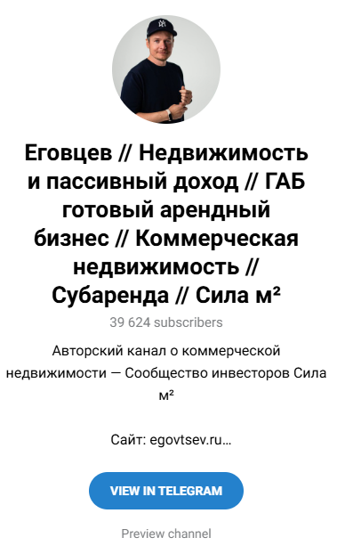 Информация об услугах владельца недвижимости Василия Еговцева опубликована на официальном сайте egovtsev ru. Он также ведет Телеграм-канал Egovtsev Vasilii с 39 000 подписчиками. Паблик появился в мае 2023 года. Еговцев заявляет, что разработал уникальную стратегию инвестирования, основанную на собственном опыте. Хотя прямых подтверждений этим словам он не предоставляет.