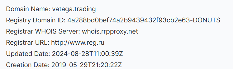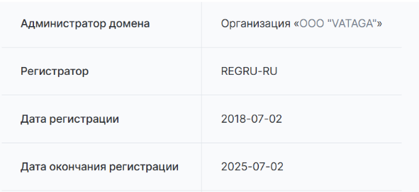 Домен vataga ru зарегистрирован и того ранее – в 2018 году, администратор домена ООО “Ватага”.