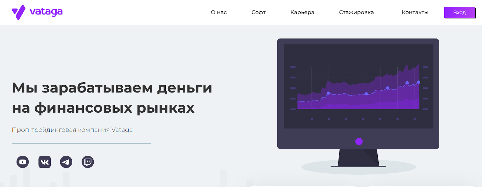 Ресурс Vataga Crypto – проп-трейдинговая платформа, которая предлагает всем желающим трейдерам обучение, как продавать и покупать на бирже и обещает возможности заработка.