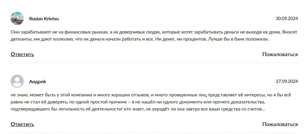 • У компании нет базовой лицензии ЦБ РФ и опубликованной статистики по сделкам. Это определенно минус в деятельности организации.
