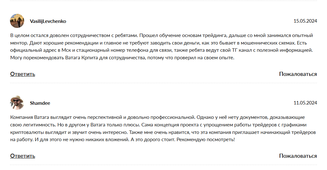 Отзывы трейдеров о работе с Vataga Crypto