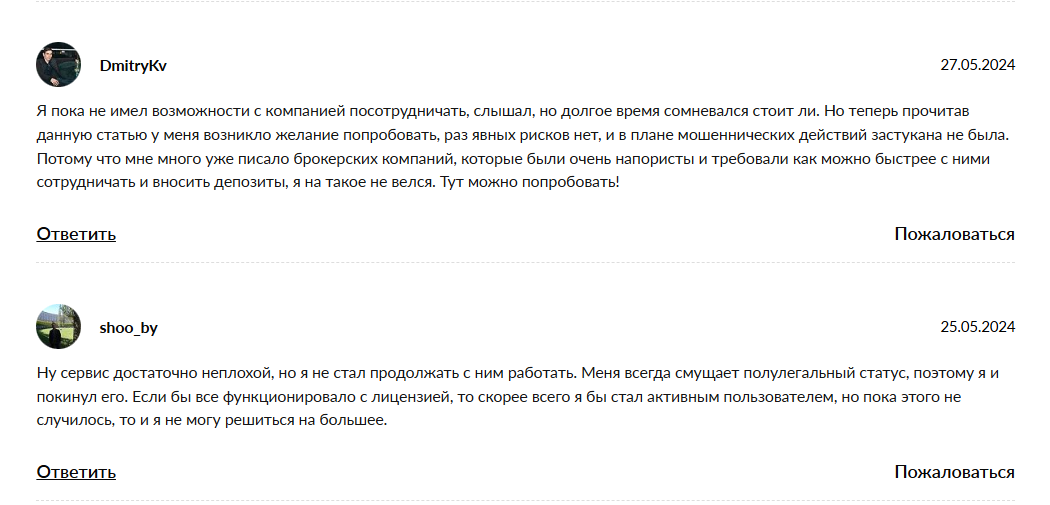 Отзывов на ресурс довольно много в интернете. Есть и негативные отзывы с отрицательной характеристикой сервиса, есть и напротив, очень позитивные отзывы довольных клиентов успешными сделками.