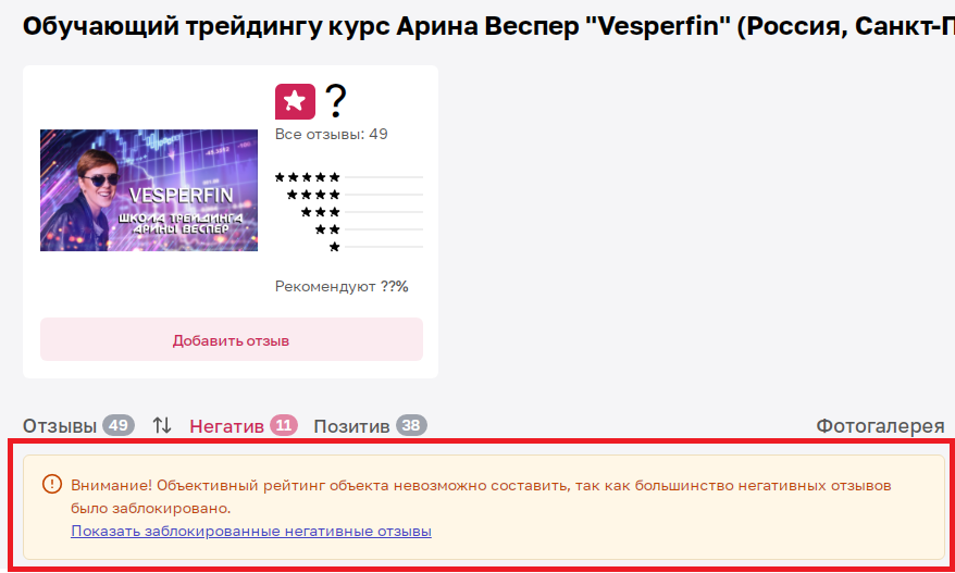 Перечислим основные минусы курсов школы финансов Арины Веспер: