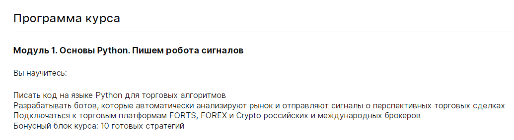 Каждый студент, записавшийся на курс, получает бонус — десять проверенных торговых стратегий и готовую библиотеку шаблонов.