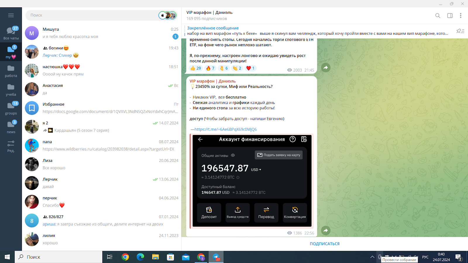 VIP марафон Даниэль — блог в телеграм, где трейдер обучает подписчиков зарабатывать на трейдинге. Он делится полезными ссылками и аналитикой. Проведем анализ этого блога.