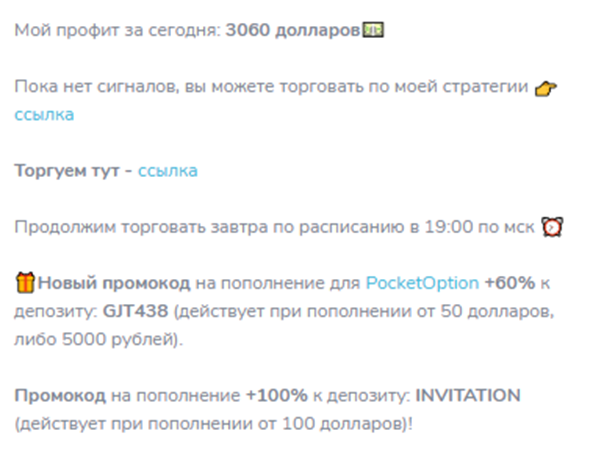 Nikita190 постоянно рекламирует сторонние проекты, оставляя свои реферальные ссылки. Зачастую эти ссылки переводят на биржу, где для работы нужны вложения. Все группы трейдера доступны в бесплатном формате, поэтому подписаться на «Трейдер с Алтая | Сигналы для бинарных опционов» или любой другой паблик может любой желающий.