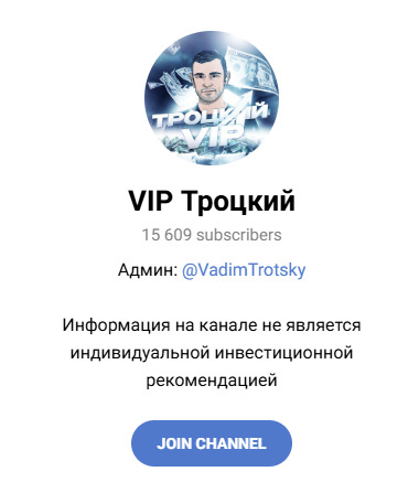 Телеграмм-ресурс трейдера называется “VIP Троцкий”. Он представляет собой чат сообщества, подписаться на который можно только по пригласительной ссылке. На сентябрь 2024 года на него подписано более 15 тысяч человек.