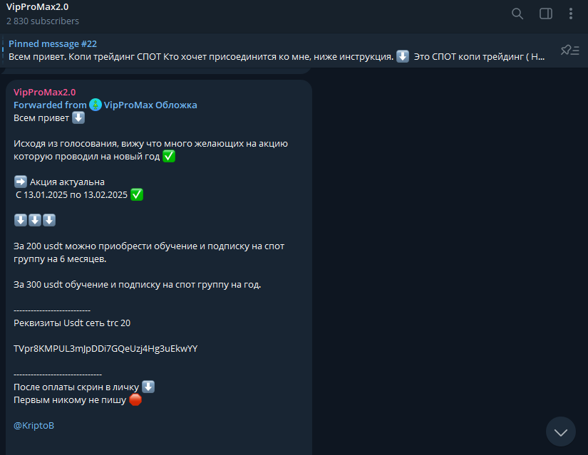 Виппромакс – телеграмм-канал от трейдера KriptoB, где выкладываются авторские прогнозы BTC, ETH, XRP. Автора канала заявляет о том, что гарантия информации 100 % и она проверенная, также предупреждает обман и рекомендует только надёжные схемы. Это не новичок‑инфобизнесмен, но и не признанный аналитик — скорее смешанный формат сигналов, краткие обзоры альт‑ и мейн‑коинов плюс ссылки на YouTube‑канал. Разберем подробно работу канала и есть ли отклики о работе автора.