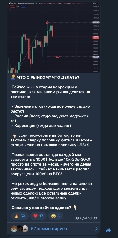Основной контент на канале – новости, которые касаются криптовалютного рынка. Также автор проекта пытается делать прогнозы. Однако, он предупреждает, что это только его предположения, и они не являются прямыми торговыми рекомендациями.