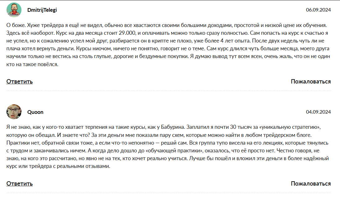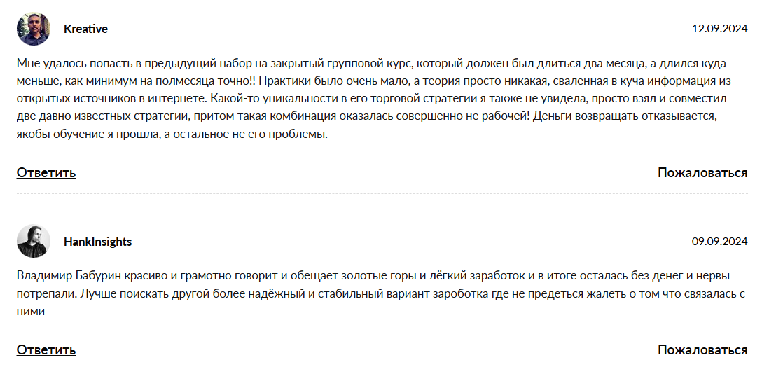 Мы не рекомендуем нашим читателям обращаться за обучением к трейдеру Владимиру Бабурину, так как нашли признаки недобросовестного оказания услуг.