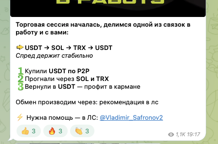 О платных услугах публично не заявлено. Тем не менее, трейдер часто вбрасывает в ленту своего тг-канала предложения обращаться к нему за помощью. Для этого нужно написать в чат Vladimir Safronov2.Чтобы мотивировать подписчиков это делать, он периодически рассказывает о собственных успехах и достижениях своих последователей. Однако, верифицировать их невозможно.