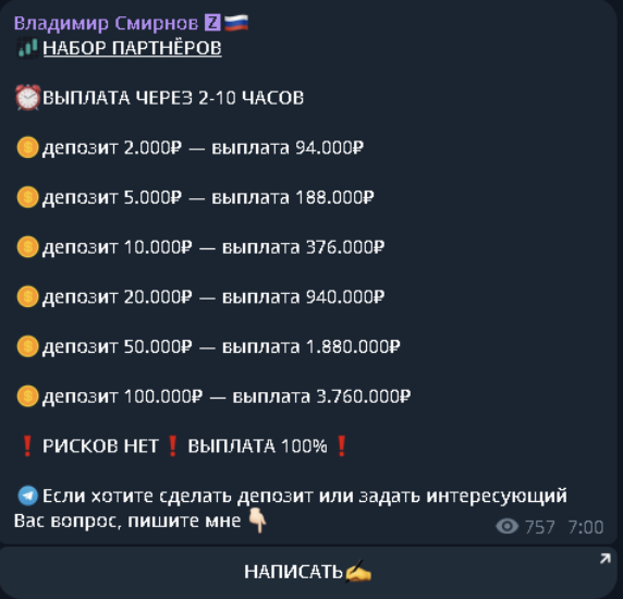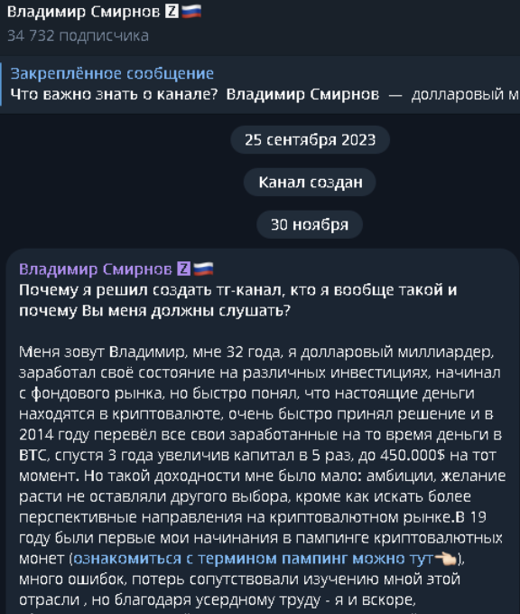 Владимир Смирнов – человек, представляющийся супер-успешным инвестором. На своем телеграмм-канале он постоянно хвастался гигантскими заработками.