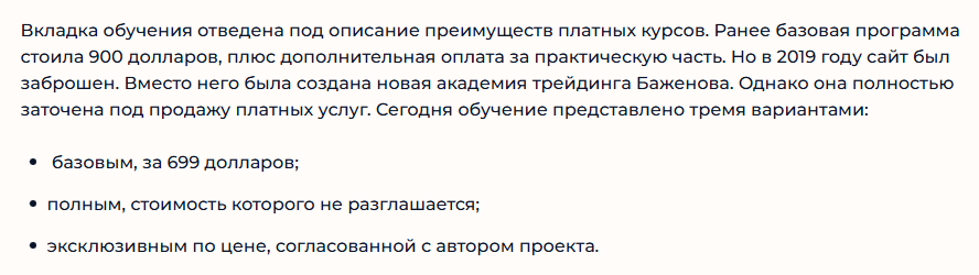 Наши аналитики собрали данные о трейдере и наставнике, условия работы, качество образовательных услуг, оценки от бывших выпускников. Собранный материал лег в основу таких итогов: