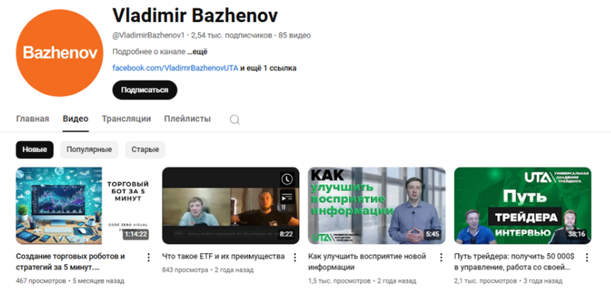 У Владислава Баженова удалось найти ютуб-канал о крипте, инвестициях, способах заработка на 2 540 пользователей.