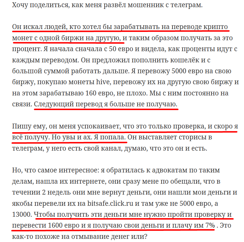 Как можно заметить из отклика, жертва обмана также вышла на повторную развод от чарджбэк-фальшивки, которая потребовала перевести деньги за прохождение некой проверки.