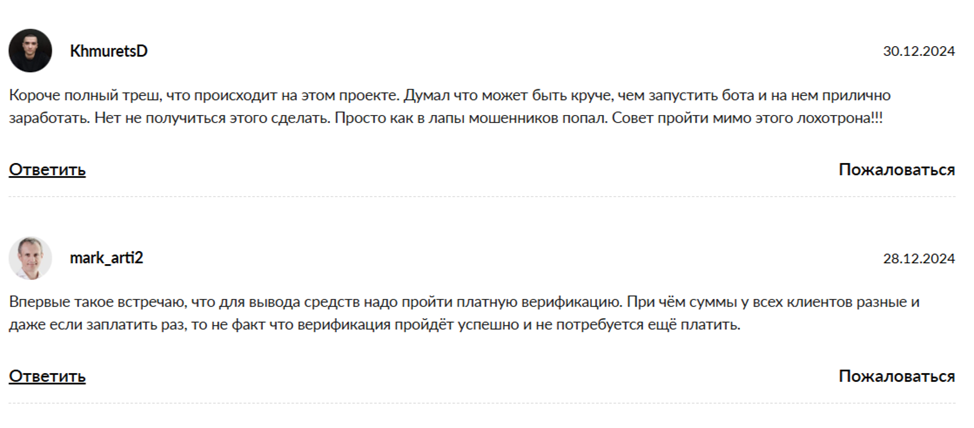 Авторы бота MEXC RU TRADE Bot отмечают, что площадка является собственностью известной биржи. Но официальные подтверждения отсутствуют. Пользователи не могут вывести средства. Также мы выявили несколько признаков мошенничества: