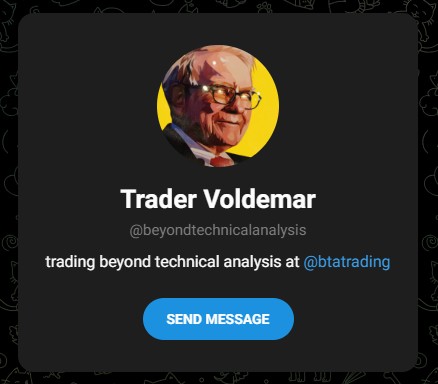Телеграмм-проект Voldemar BTA Trading (@voldemar btatrading) и его клон BTA Trading FX Crypto (@btatrading) предлагают сигналы на фьючи и обучение от анонимного гуру. Неизвестный автор с никнеймом Trader Voldemar (@beyondtechnicalanalysis) обещает подписчикам профит и стабильный заработок на крипте. Разберемся, что на самом деле стоит за аватаром Уоррена Баффетта и стоит ли доверять свои деньги этому «Вольдемару».
