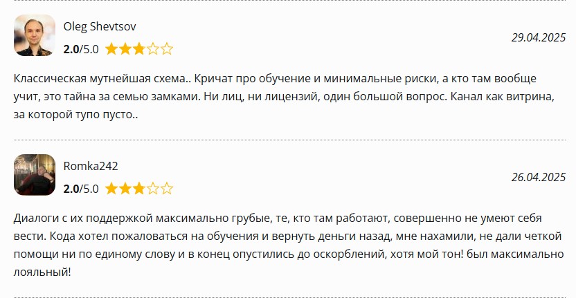 На своих Телеграмм-каналах @beyond technical analysis, конечно же, выкатывает только хвалебные оды от вымышленных учеников. Зато на независимых площадках картина совсем другая, реальные отзывы о проекте @voldemar btatrading исключительно негативные.