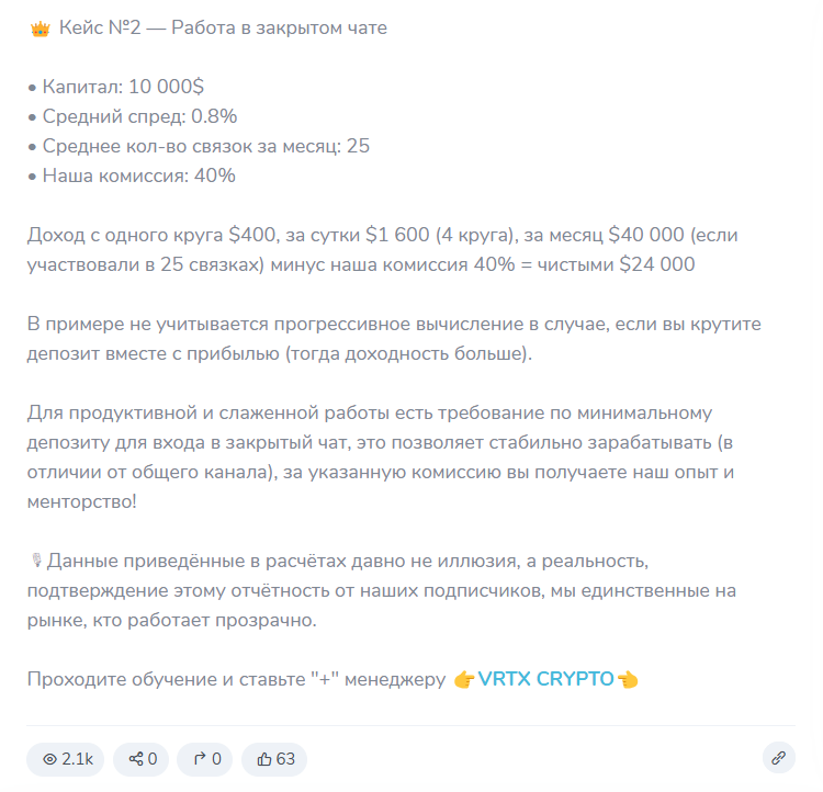 Крипто-арбитраж Vertex Crypto: подробности о сообществе