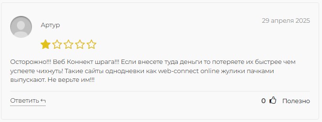 «Веб Коннект Онлайн» – примитивная мошенническая схема, упакованная в сайт с красивыми картинками. Псевдо-брокер не ведет никакой реальной торговой деятельности, а лишь имитирует и ворует деньги наивных неопытных криптанов. Все, от анонимности админов до схемы работы с «личными менеджерами», указывает на явный скам.
