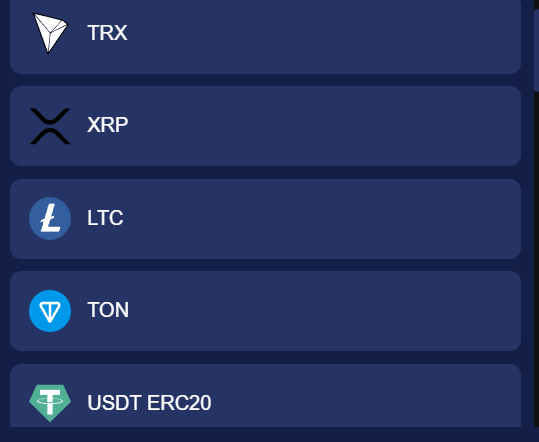 Среди конкретных активов, имеющихся на сайте, кроме биткоина и эфириума, есть TRON, TON, различные виды и версии токена Tether, работающие на блокчейне Ethereum, LiteCoin, Solana, ADA, мемкоин DogeCoin и прочие криптовалюты.