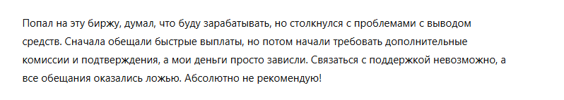 Хотя биржа ведет активную работу, положительные комментарии о ней на других сайтах не найдены.