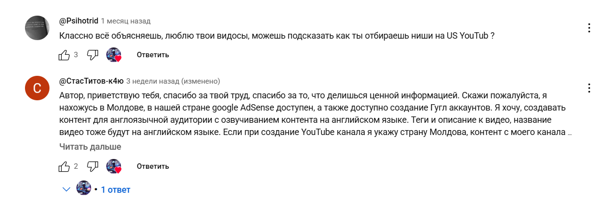 Пользователи не высказывают мнений по поводу пользы от вступления в платный канал, но комментарии на Ютуб в основном положительные или нейтральные. Авторы спрашивают создателя контента «WhyPlugg Убт КэшФлоу» о разных особенностях по привлечению трафика и монетизации, а некоторые просто благодарят за полезную информацию.