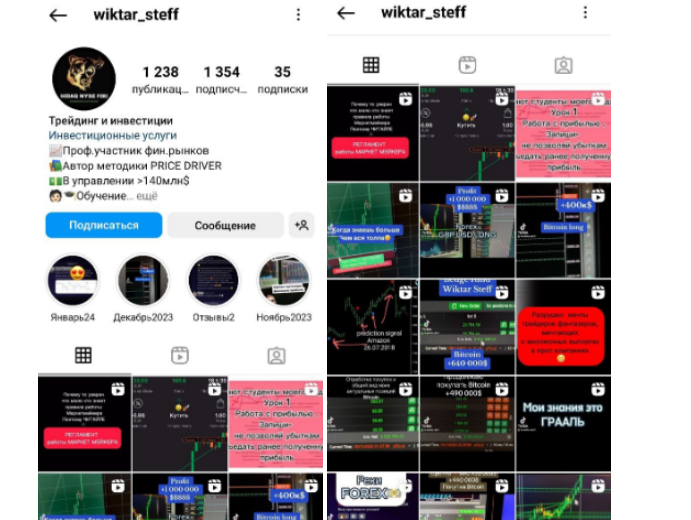 В своих социальных сетях админ инвестиционного проекта Wiktar Steff публикует бесплатную информацию о том, как закрыть торговые позиции в плюс. Однако основную долю сотрудничества составляет обучение премудростям финансовой торговли.