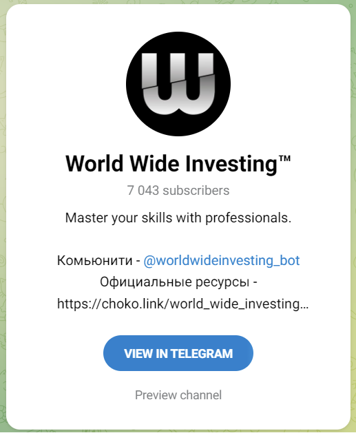 World Wide Investing начал свою деятельность в 2023 году. На своих страницах и каналах в Телеграмм автор постит различные финансовые новости, информацию о криптовалютах и сделках.