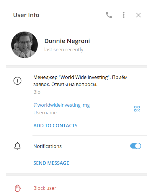 В worldwideinvesting bot вы автоматически можете узнать подробности о трейдере.