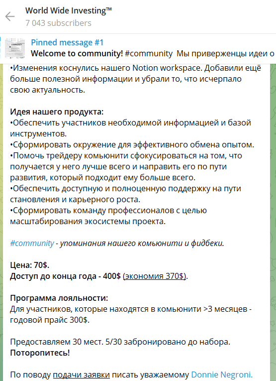 Попасть в закрытое VIP-сообщество WorldWideInvesting можно за 70$.