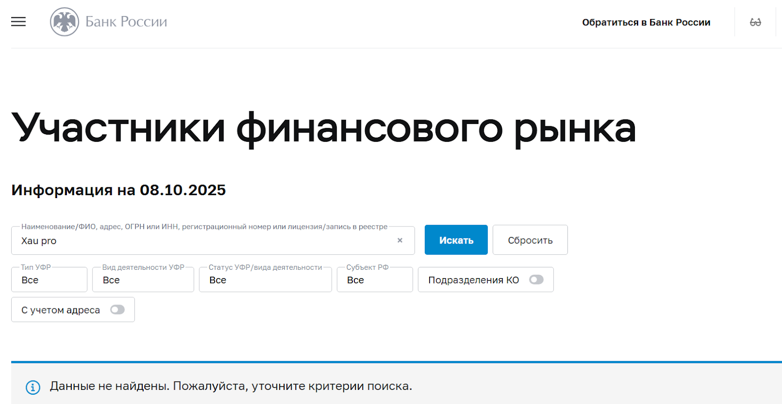 У Xau Pro отсутствует лицензия ЦБ РФ. На сайте регулятора не оказалось никакой информации об этой платформе. Представленный момент подтверждает ее незаконную работу. Значит, ее деятельность на территории РФ нелегальная.Служба поддержки Xaupro
