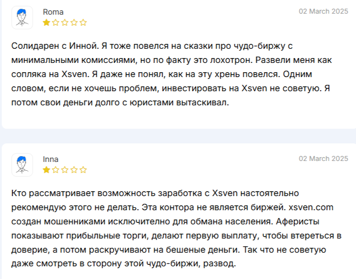 За короткое время работы криптобиржа приобрела лишь жалобы со стороны своих клиентов. В негативных отзывах о платформе Xsven сайт называют мошенническим и не рекомендуют пользоваться услугами аферистов.