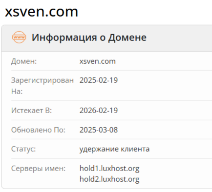 Проверка домена биржи криптовалюты xsven com позволила установить, что сайт появился 19 февраля 2025 года. На момент обзора торговая платформа недоступна. Вполне возможно, мошенники уже работает на новом домене.