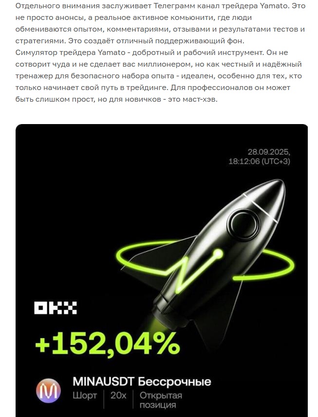 В октябре 2025 года в сети сложно найти конкретную информацию о проекте, так как есть только какие-то обрывки, в которых расхваливают систему торговли, но ничего подробного не пишут. С одной стороны, это какой-то симулятор биржи, с другой – так называют трейдера, но все сводится к каналу в Телеграмм Yamato по заработку, причем ссылки на него нет, хотя его называют популярным.
