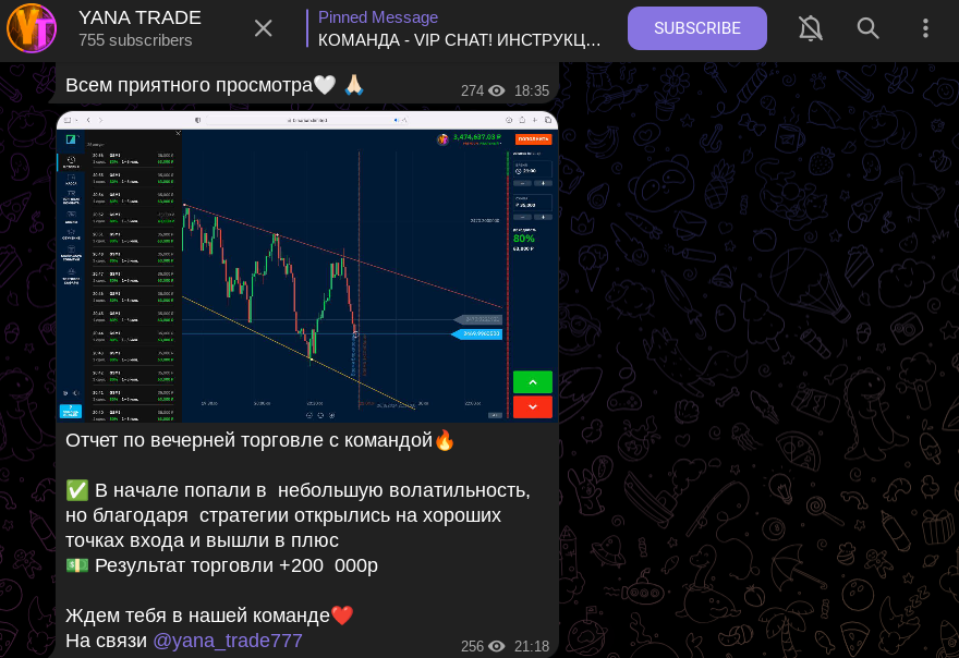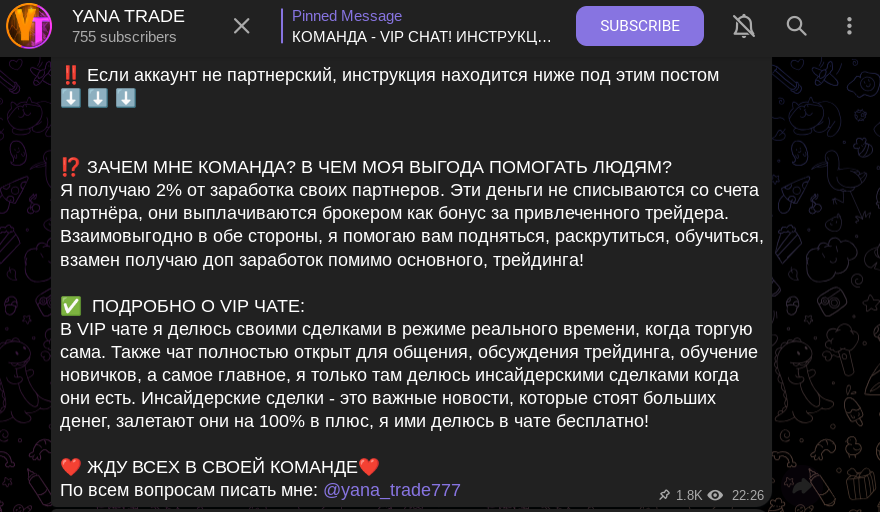 - Комментарии закрыты, отдельного чата, где пользователи могли бы поделиться мнением об информационном телеграм-канале YanaTrade777.