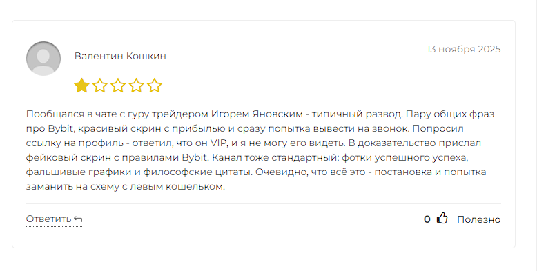 Узнать в самом паблике, что думают подписчики о методике автора, невозможно, ведь комментарии там закрыты. Отдельного чата у сообщества тоже нет. Тем не менее, встречаются отзывы о проекте igoryanovsky в независимых источниках. И они далеко не радужные: канал Yanovskiy Crypto приравнивают к скаму.