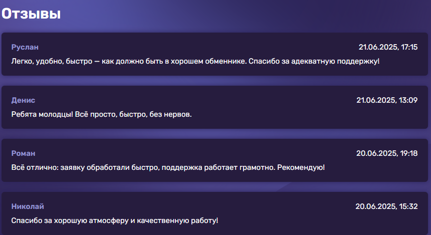 Конкуренты зачастую предлагают более широкий набор инструментов: лимитные ордера, пункты самовывоза, мобильные приложения и программы лояльности. В свою очередь,они демонстрируют, что сервис удерживает стабильный поток клиентов за счёт простоты и понятного интерфейса, без наворотов и излишних требований к верификации.