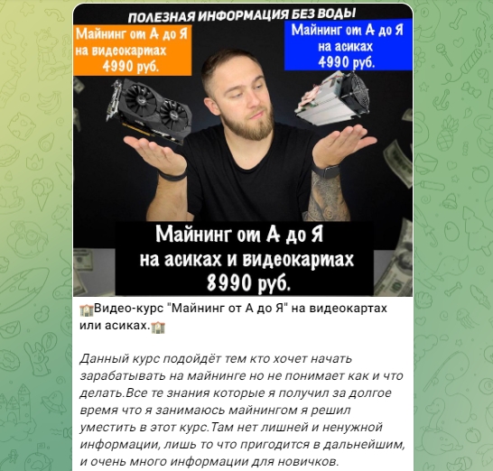 У Дмитрия есть два платных курса Майнинг от А до Я на видеокартах и Майнинг от А до Я на асиках, общей стоимость почти 9 тыс. руб.