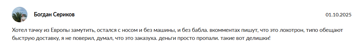 Некоторые участники верят обещаниям авторов по продаже машин из Европы, но переведя деньги жалуются на обман. Клиенты не получают машины и им не возвращают деньги, а сам интернет-магазин авто зовут лохотроном.