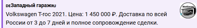 Приобретать авто и обращаться к телеграмм-магазину «Западный Гараж» мы не рекомендуем.