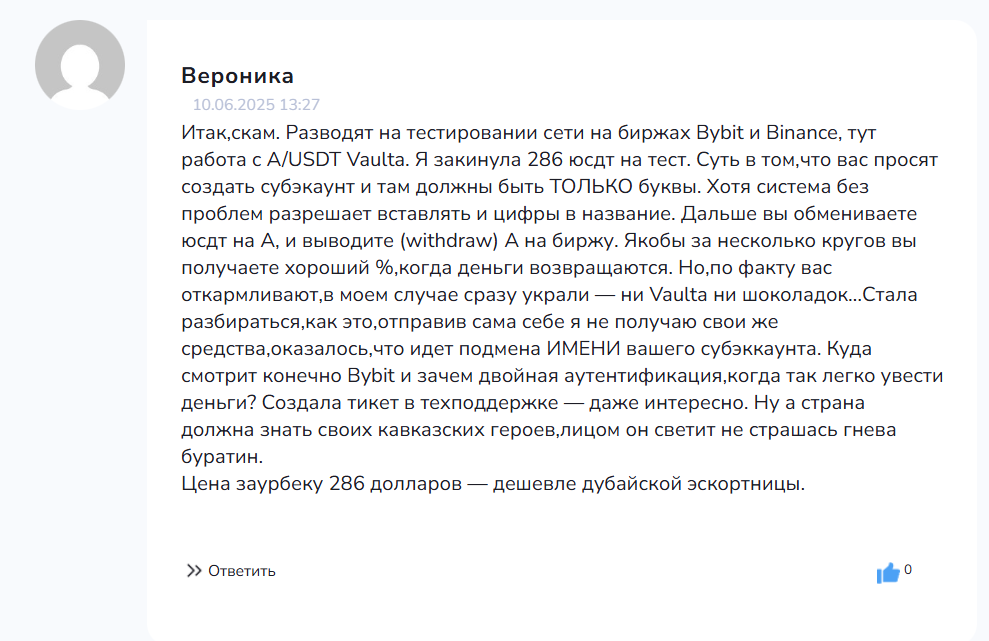 Благодарностей от довольных клиентов Заурбека в сети нет, а пользователи утверждают, что трейдер использует хитрую схему с подменой имен в субаккаунтах. Жертва считает, что отправляет деньги себе, но они уходят другим людям, а пострадавшие в итоге просто оказываются с убытком. Некоторые пытались решить вопрос через поддержку, но получилось ли у них, неизвестно.