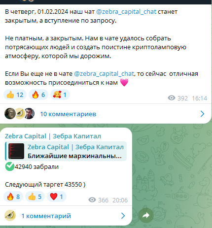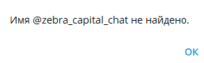 - чат Zebra capital chat, в который приглашает автор участников сообщества, не идентифицируется на платформе Телеграм;